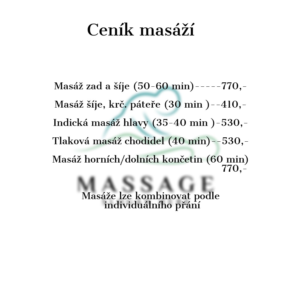 1 ošetření ( celková doba 70 minut) ...................................................................................................890,-